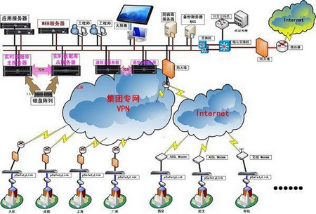 由于各站庫地理位置分散,從站庫接入到調度中心的網絡通信方式多種多樣。一部分集團公司直屬的站庫采用集團專網,集團專網租用電信專線通過VPN實現廣域網傳輸。其它不具備接入集團專網的站庫,則采用ADSL、無線等接入方式通過互聯網將數據傳到中心。最終構成的整個指揮調度系統的網絡結構非常復雜。聯網后,將導致各站庫的站控網絡直接暴露給集團專網或互聯網。該集團專網是面向集團內各地分公司的辦公網絡,應用數據多樣而復雜;互聯網則更是一個開放網絡。而由各種DCS、PLC、RTU、儀表等控制系統組成的站控系統負責完成對門站、調壓站、管網的基礎數據采集、控制、聯鎖保護等任務,因此,其控制網絡的安全性非常重要,一旦直接暴露給外網,就有可能因受到外網的惡性攻擊、病毒感染而導致控制網絡阻塞、癱瘓,甚至產生破壞和影響生產的嚴重后果。