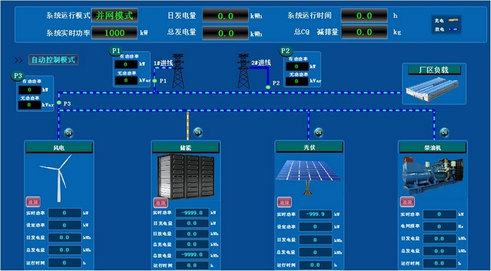 力控軟件平臺提供設備使用狀況監(jiān)控功能,顯示逆變器等設備的運轉情況、電流和電壓、設備的故障信息,提供自動報警功能,并對重要儀表進行統(tǒng)一管理,提示維修人員及時更換備件、及時維護,延長儀表的使用壽命。