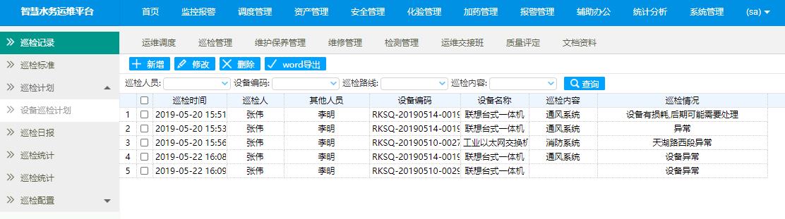 在系統中可根據巡檢的路線及巡檢的內容,生成不同版本的水務巡檢計劃用例,安排工作人員通過手機APP執行巡檢計劃用例,按照巡檢路線及巡檢項目內容進行巡檢工作。 系統根據巡檢任務執行和巡檢反饋形成巡檢記錄,并對巡檢結果進行執行確認評估。 系統使用人員可根據計劃時間、巡檢任務等進行巡檢查詢。