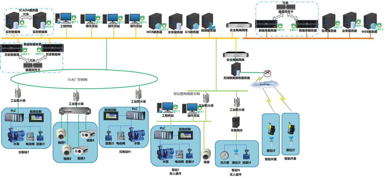 能夠通過BS瀏覽器方式顯示各類統計匯總信息,給企業的運行管理提供直觀、高效的運行監視圖,實現污水廠監視畫面集成。能夠集成污水廠SCADA、進出口處的主要數據(包括壓力、流量、液位、水質等)及其集中監視畫面。展示關鍵運行數據:包括出水數據,電耗數據,加藥數據,設備數據等; 監視畫面中設備區域可以和設備檔案之間建立鏈接,雙擊即可跳轉到對應設備臺帳信息,雙擊監視畫面中的測點,可以直接察看每個測點的歷史數據曲線。