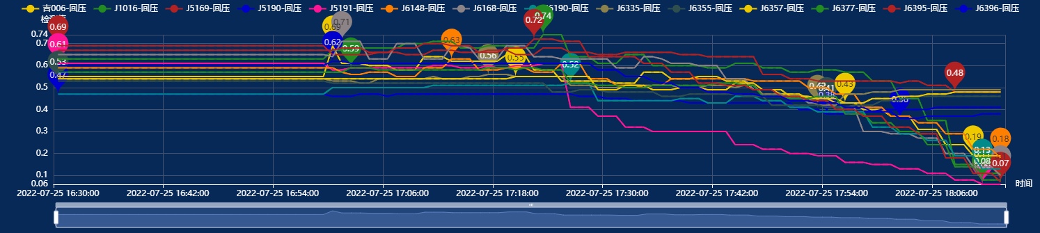 生產數據報警包括通訊故障報警、異常停機報警、參數超限報警三個報警,通過常規高低限設定、多條件組合報警設定、同A2日報標準值變化率報警設定三種方式,實現全面監控油田生產過程,通過平臺預設邏輯判斷,幫助運維管理人員精準定位故障原因及故障環節,快速解決問題,恢復正常生產。