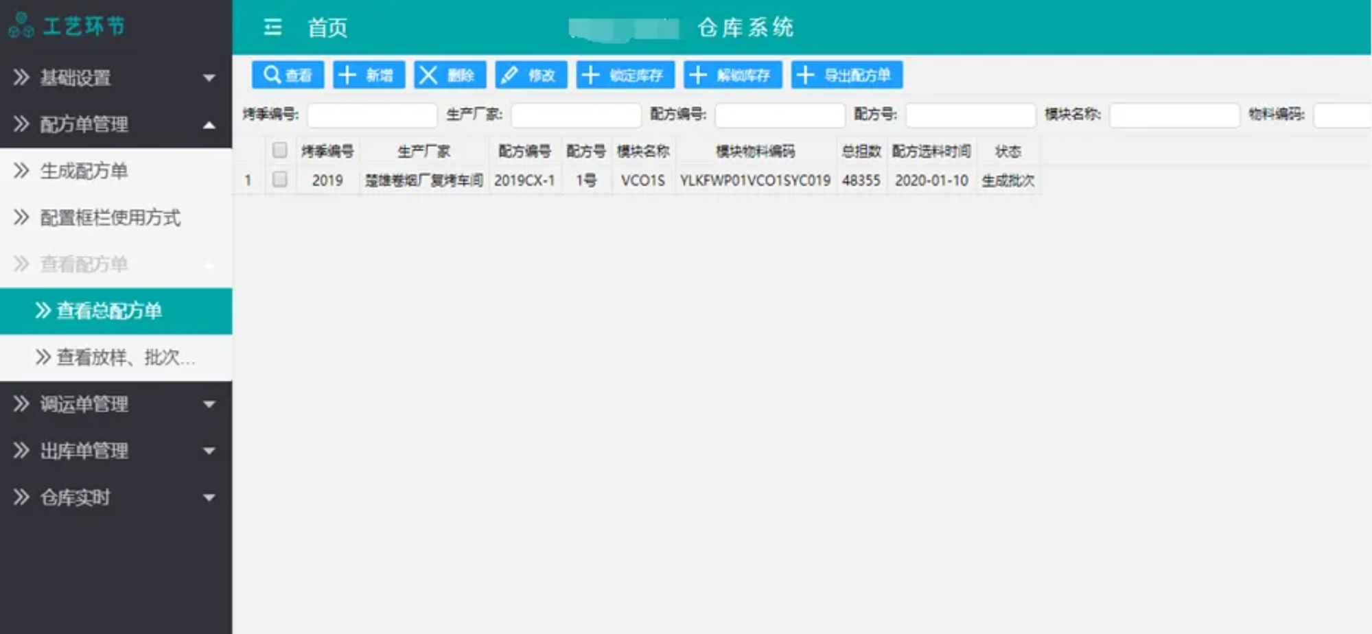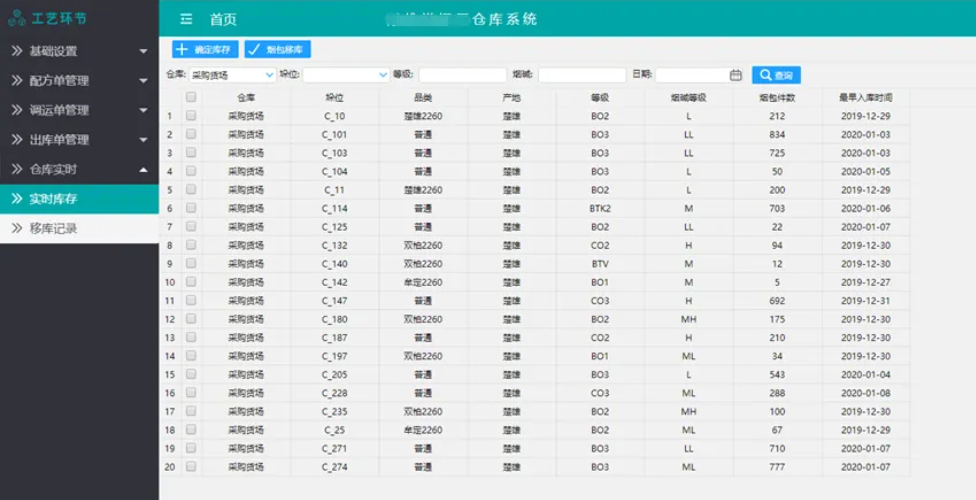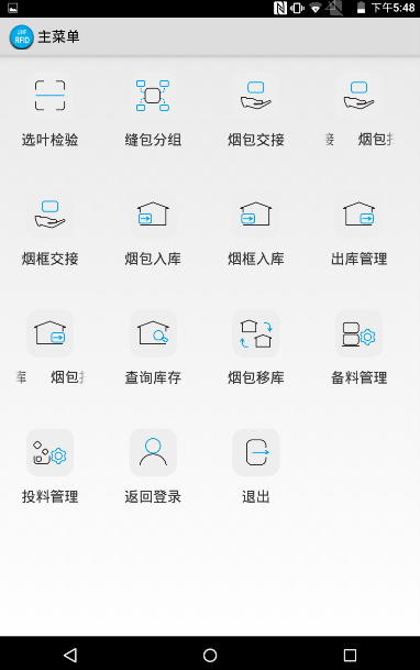主要包含原煙分選、選葉檢驗、分組縫包、煙包/煙框交接、煙包/煙框入庫、出庫管理、查詢庫存、移庫、備料投料等功能。