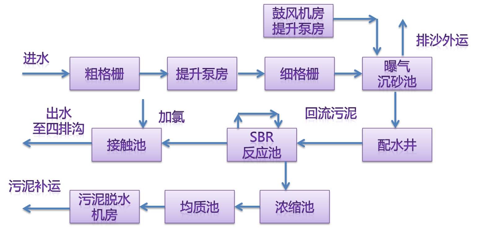 以昌黎污水廠為例,簡(jiǎn)要介紹污水處理工藝流程。昌黎縣污水處理廠是被國(guó)家列入“三河三湖”、“渤海碧海”水污染治理的重點(diǎn)項(xiàng)目。日處理污水能力達(dá)到4萬噸,污水處理后可達(dá)到《城鎮(zhèn)污水處理廠污染物排放標(biāo)準(zhǔn)》一級(jí)A標(biāo)準(zhǔn),排放水質(zhì)可直接用于農(nóng)田灌溉。初步污水處理工藝采用MSBR工藝即序批式活性污泥處理工藝;污泥處理工藝推薦采用帶式濃縮、脫水一體機(jī)濃縮脫水;消毒工藝采用紫外線消毒。污水經(jīng)處理后作為中水排入附近深化處理塘進(jìn)行自然凈化,最終全部回用。該項(xiàng)目投入運(yùn)營(yíng)后,每年可以減少近千萬噸的污水排放量,不僅大大改善該縣城區(qū)居民的居住環(huán)境,而且對(duì)改善該縣及周邊地區(qū)的海域水質(zhì)起到關(guān)鍵性的作用,對(duì)縣域經(jīng)濟(jì)社會(huì)的可持續(xù)發(fā)展具有重要意義。
