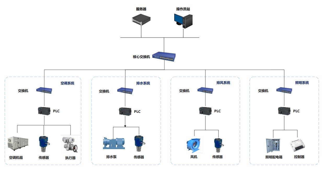 基于力控SCADA進行設計的樓宇自控BA系統,旨在打造一個高度集成、智能化的管理平臺,實現對樓宇內各類設備的全面監控與精準控制。系統采用分層架構(現場設備層、控制層、網絡層、管理層),依托穩定可靠的網絡實現全層級數據互聯。