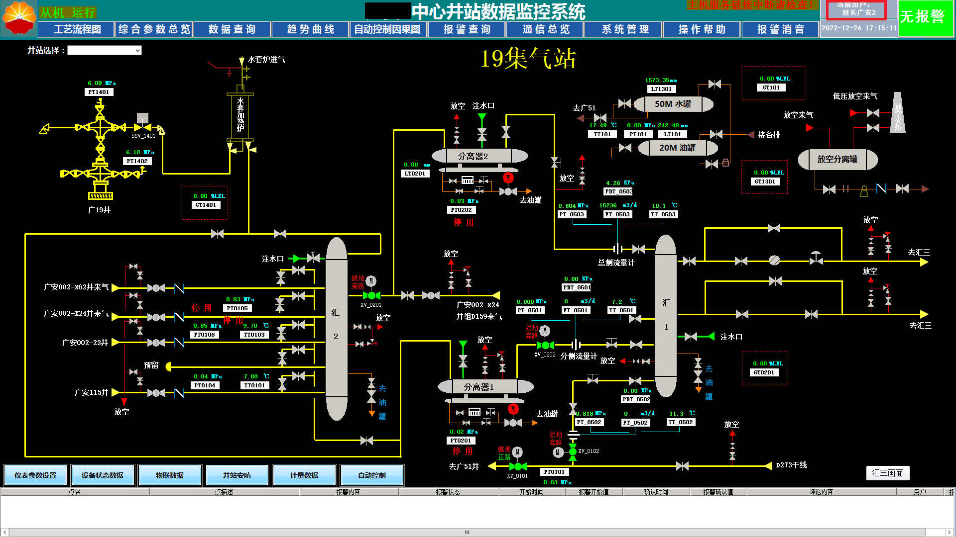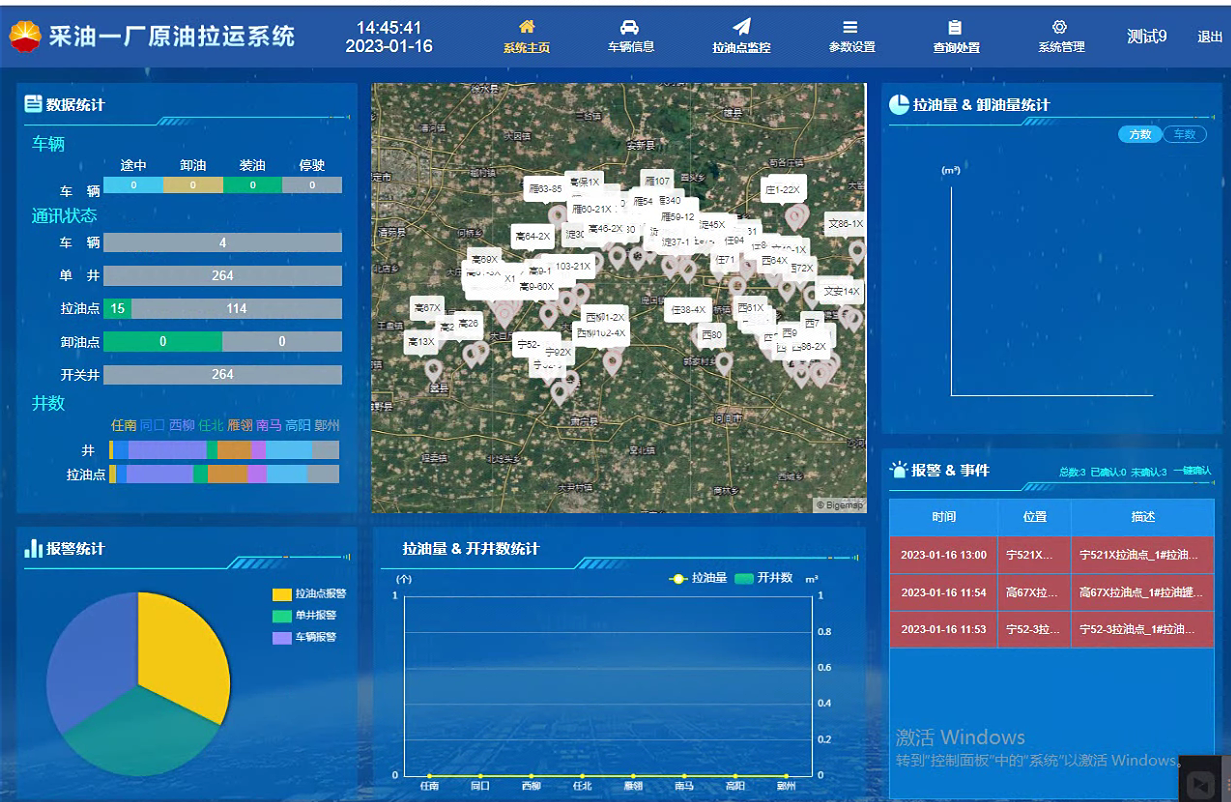 本項目部署于華北油田第一采油廠,涉及八個作業區,30余輛運輸罐車。作業區以拉油點為單元進行管理,拉油點標配3個攝像頭、電動門、儲油罐和單井。儲油罐數據包括溫度、液位、加熱棒電參數等,單井數據包含了井口溫度、井口壓力、功圖、電參等。