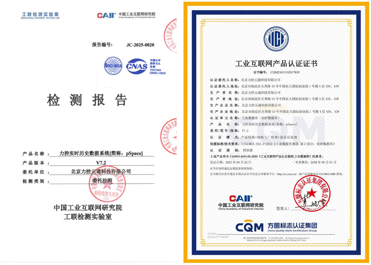 同時,力控pSpace還獲得了CQM方圓標志認證集團“工業實時數據庫”產品認證,標志著力控不僅產品技術領先,其質量管理體系和生產能力也達到了國家高標準要求,具備持續、穩定交付優質產品與服務的能力。技術測評+體系認證的雙重保障,為行業客戶應用提供了全方位信任背書。