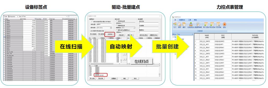 該功能涵蓋四大核心模塊:PLC標簽在線掃描、PLC點表文件離線導入、數據庫點表映射及點表層級管理。